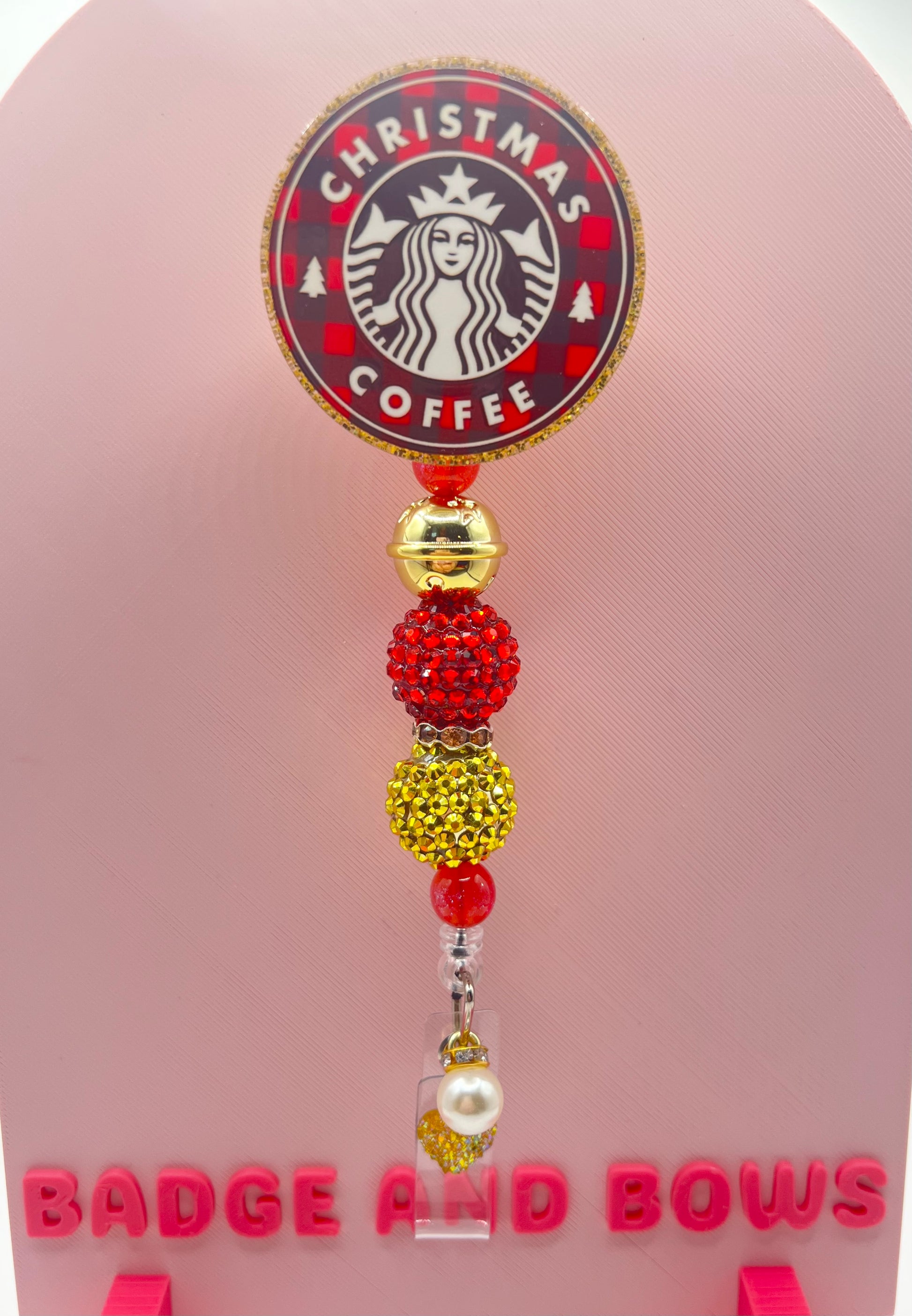 Alligator claw clip badge reels with beads.